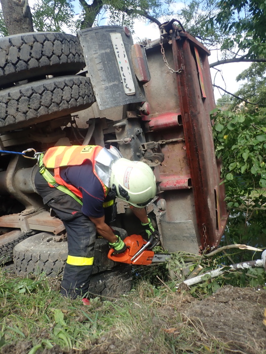 Hasiči museli nejprve „vyčistit“ plochu pro vyprošťování – odřezat poničené kovové zábradlí a část dřevin, odtlačit s pomocí techniky velké kusy betonu. Nejtěžším úkolem bylo zkombinovat sílu speciální hasičské techniky tak, aby se nepoškodila palivová nádrž havarovaného nákladního auta a nedošlo k dalšímu poškození vozidla, ležícího či visícího na pravém boku, navíc velmi nestabilního.