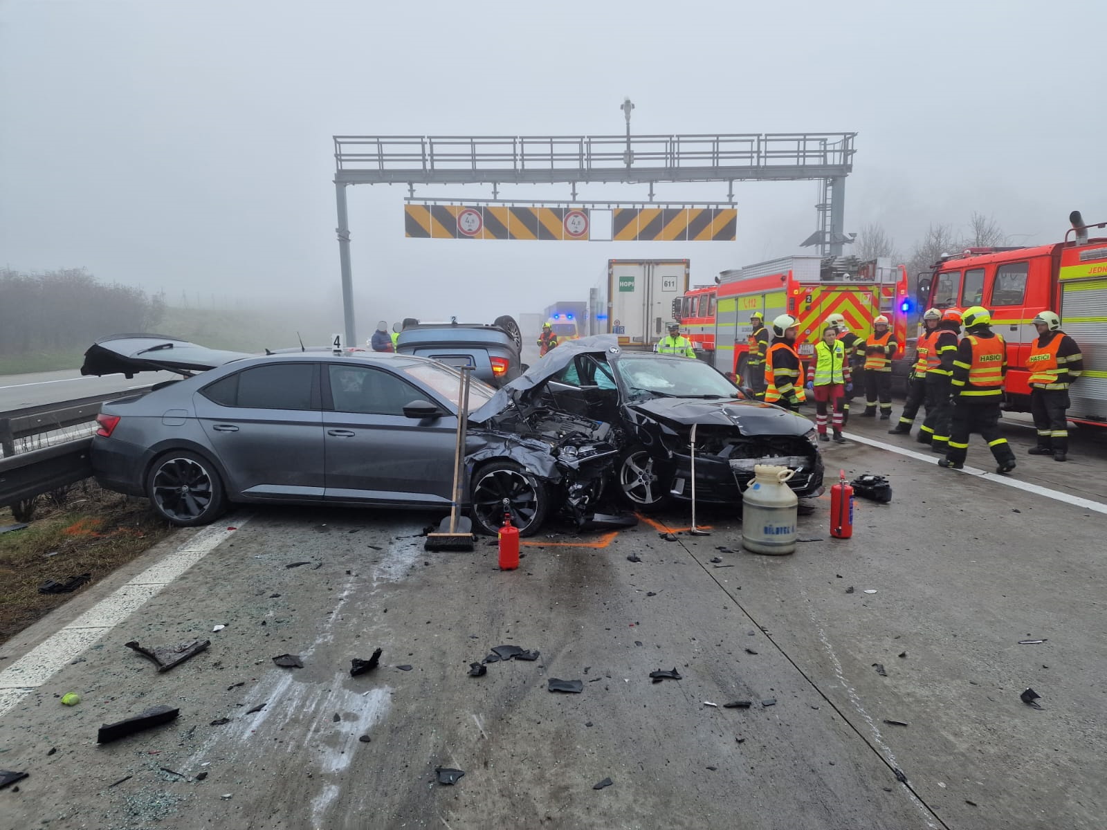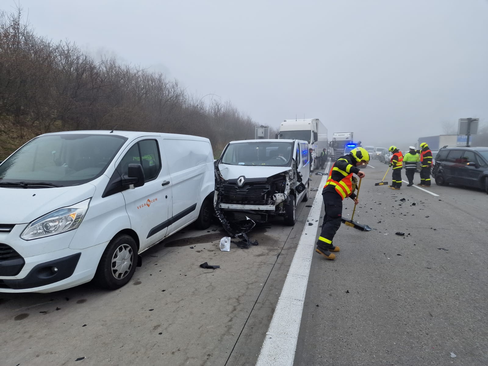 Hromadná nehoda zcela uzavřela provoz na dálnici D1 u Klimkovického tunelu. Postupně tam havarovalo více než 10 vozidel, na místě zasahovaly čtyři jednotky hasičů. Nehoda si vyžádala zranění celkem sedmi osob.