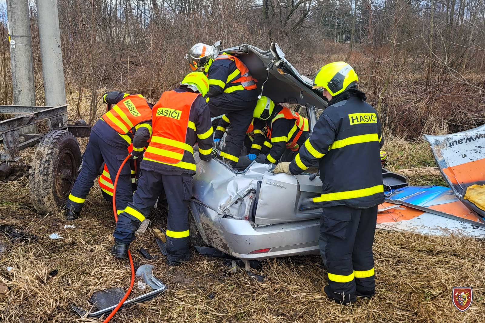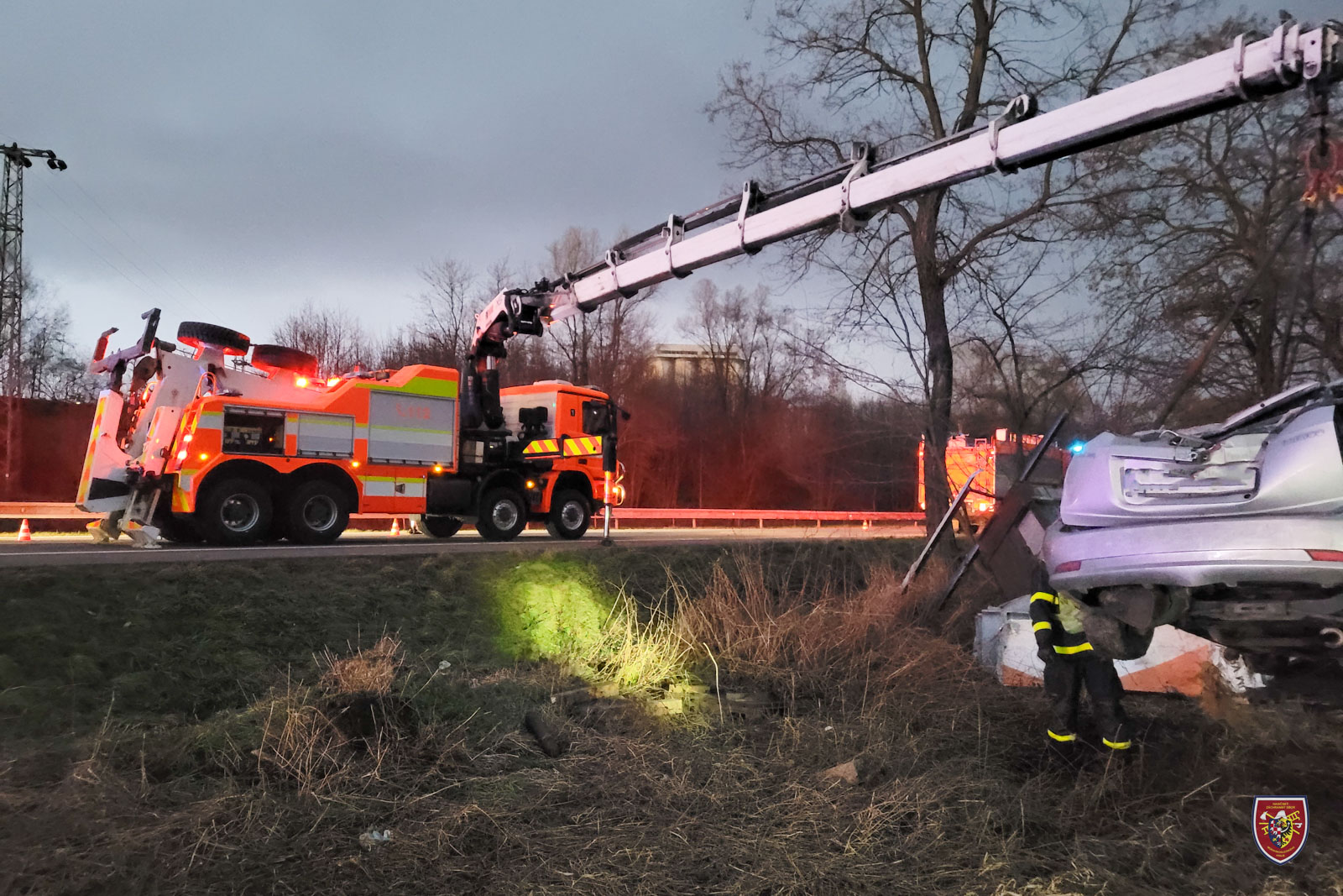 Po zadokumentování nehody ze strany Policie ČR si velitel zásahu na místo povolal vyprošťovací automobil Bison ze stanice HZS MSK v Ostravě-Zábřehu, který havarovaný vůz hydraulickým nakládacím jeřábem vytáhl zpět na komunikaci, kde si jej převzala odtahová služba.