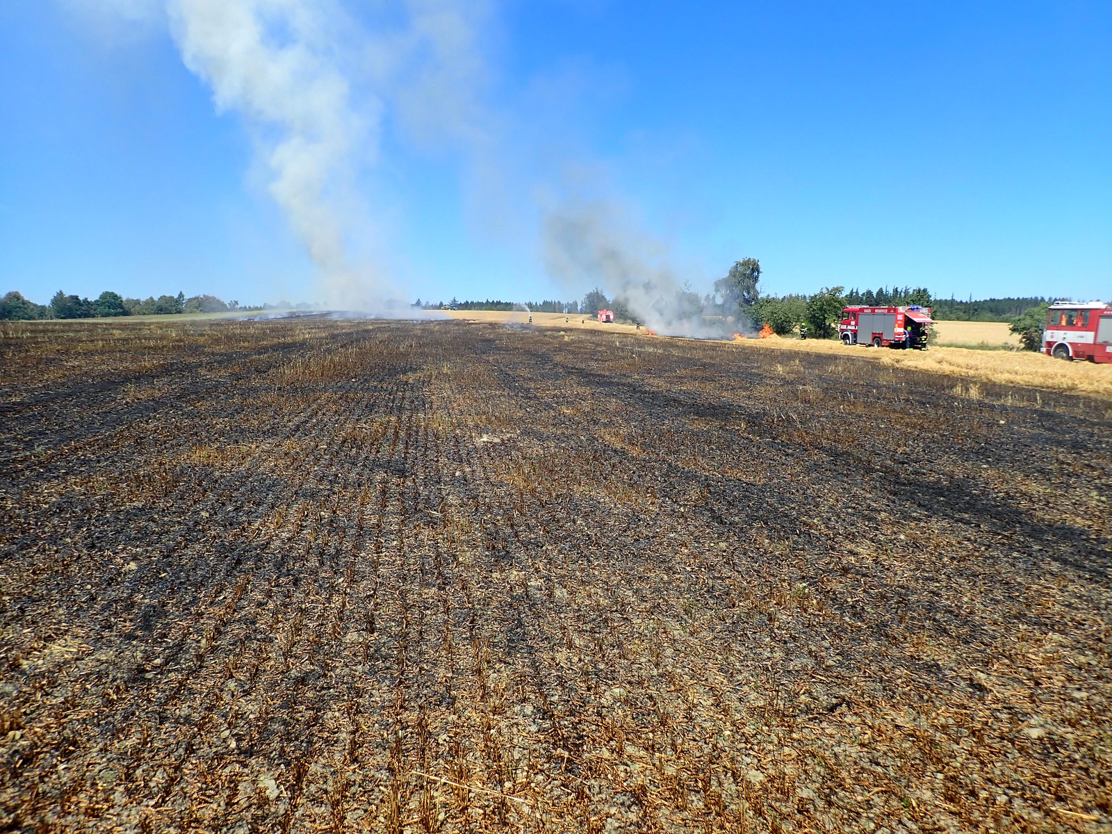 Pět jednotek hasičů zasahovalo v úterý 7. srpna 2018 u požáru šesti hektarů strniště a slámy v místní části Horního Benešova Luhy na...