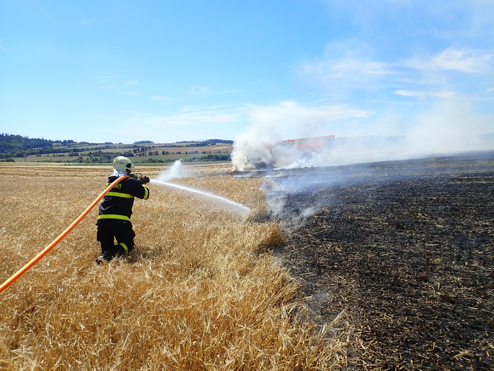 Jeden člověk byl zraněn při požáru šesti hektarů strniště v Luhách na Bruntálsku