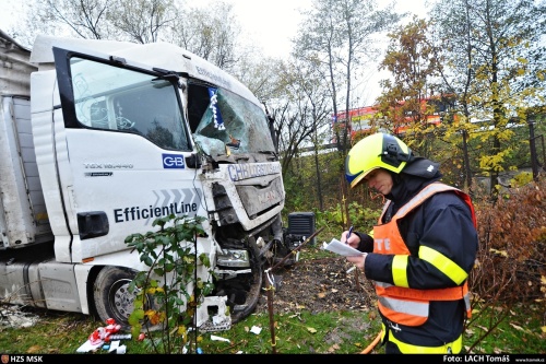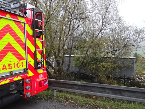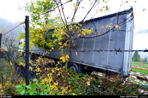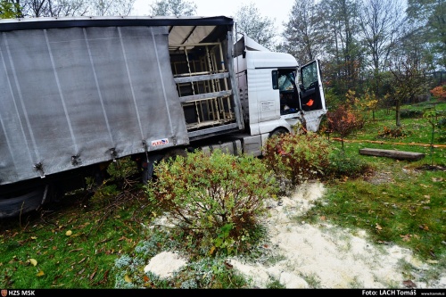 Dvě jednotky profesionálních hasičů (HZS MSK), včetně chemického vozidla, zasahovaly ve středu 8.11.2017 ráno v Ostravě-Hrabové u nehody na dálnici D56, kde skončil kamion s návěsem v příkopu, a to až v zahrádkářské kolonii. Do půdy zde uniklo ze dvou palivových nádrží kolem 1000 litrů nafty. Řidič zřejmě vyvázl podle zasahujících hasičů bez vážnějších zranění a zlomenin, stěžoval si na bolest na hrudníku.