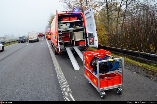Během hasičského zásahu byly s opatrnostní průjezdné oba pruhy dálnice D56 ve směru z Frýdku-Místku do Ostravy.