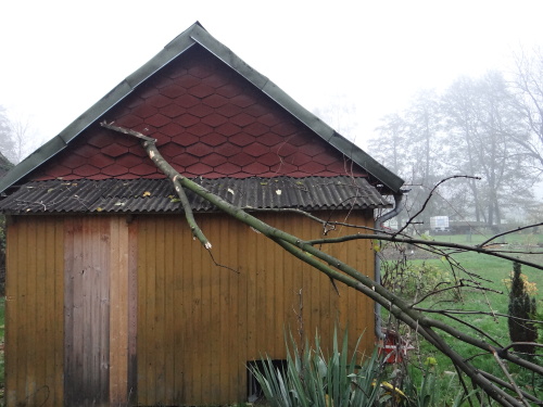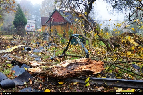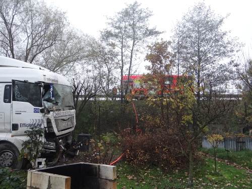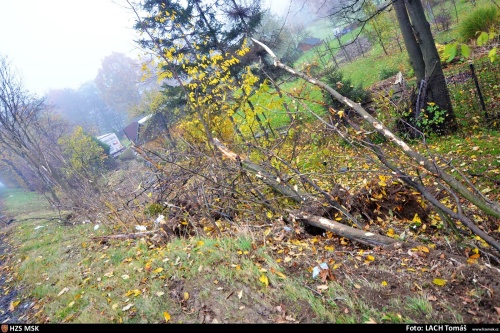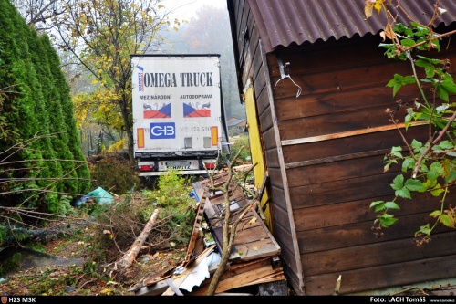 Kamion, který vezl ocelové konstrukce, při jízdě přes zahrádkářskou kolonii naštěstí nikoho nezranil a skončil na kolech. Jeden z vyvrácených stromů propíchl štít jedné z poškozených zahradních chatek. Do půdy zde uniklo odhadem 1000 litrů nafty, když hasiči dalších 50 litrů odčerpali z palivových nádrží do náhradních nádob. Havarovaný kamion zabezpečili před případným požárem.