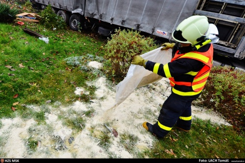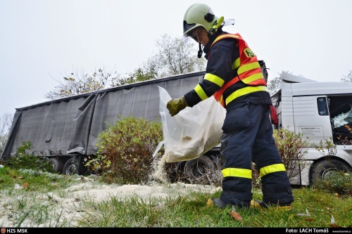 Operační středisko hasičů bylo o nehodě na dálnici D56 ve směru na Ostravu informováno v sedm hodin ráno. Do Ostravy-Hrabové vyjely dvě jednotky Hasičského záchranného sboru Moravskoslezského kraje (HZS MSK) - ze stanic Ostrava-Jih a Ostrava-Zábřeh, včetně chemického automobilu s nasákavým sorbentem. Ten hasiči použili na zasypání naftové skvrny v zahrádkách a do nedalekého potoka položili sorpčního hada.