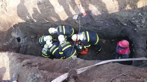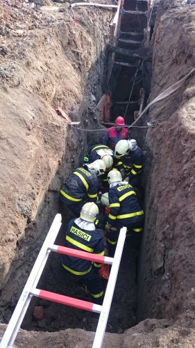 Karvinští hasiči vyprošťovali zraněného dělníka z výkopu