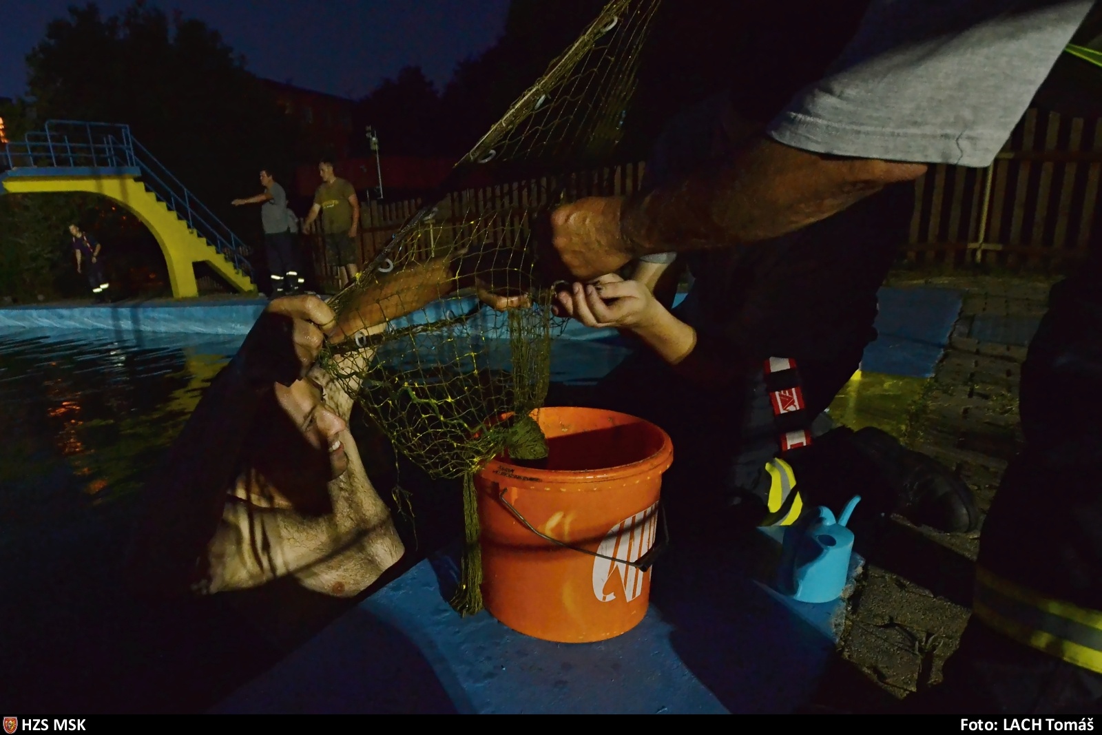 Klimkovičtí hasiči zachraňovali kačenky z večerního koupaliště