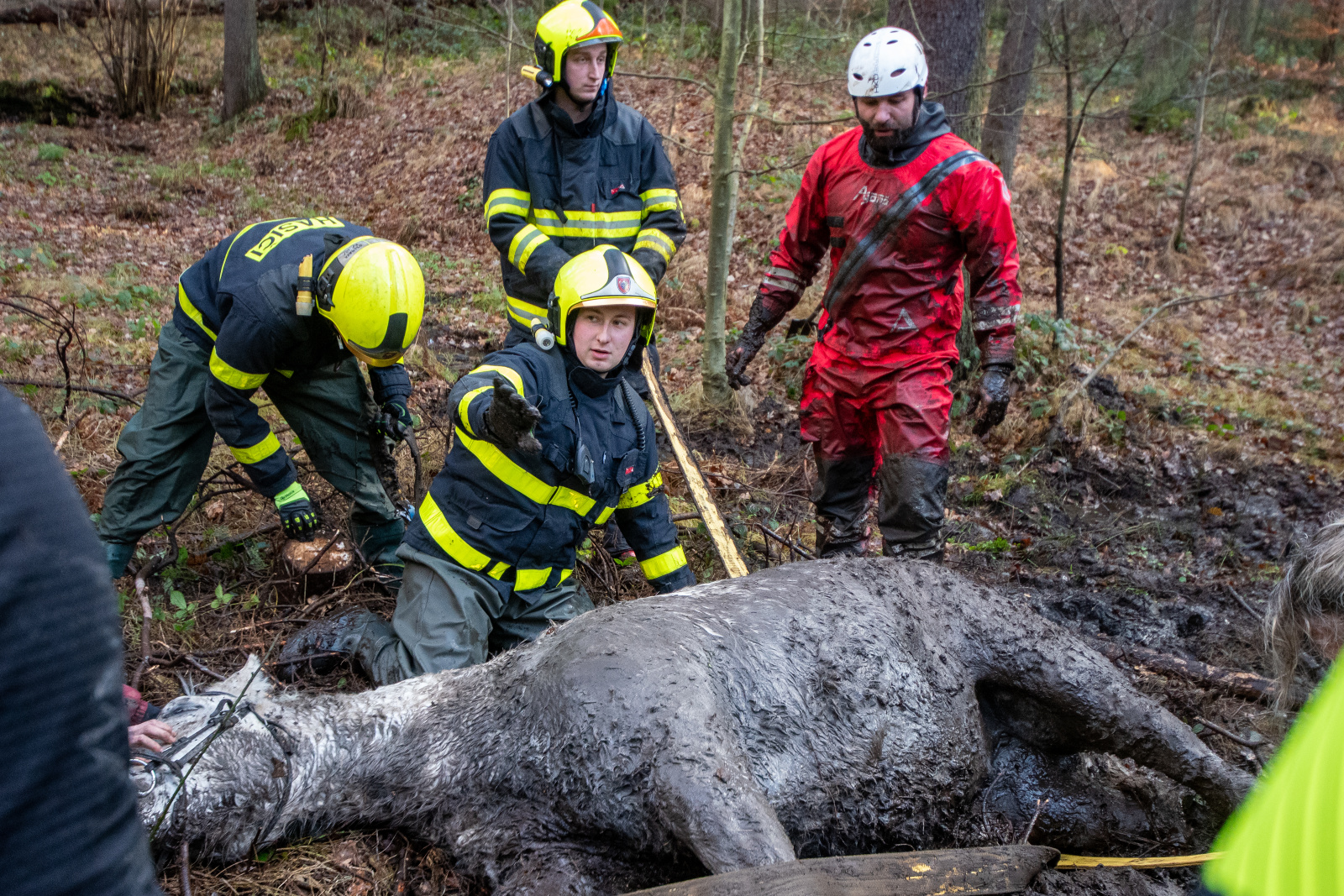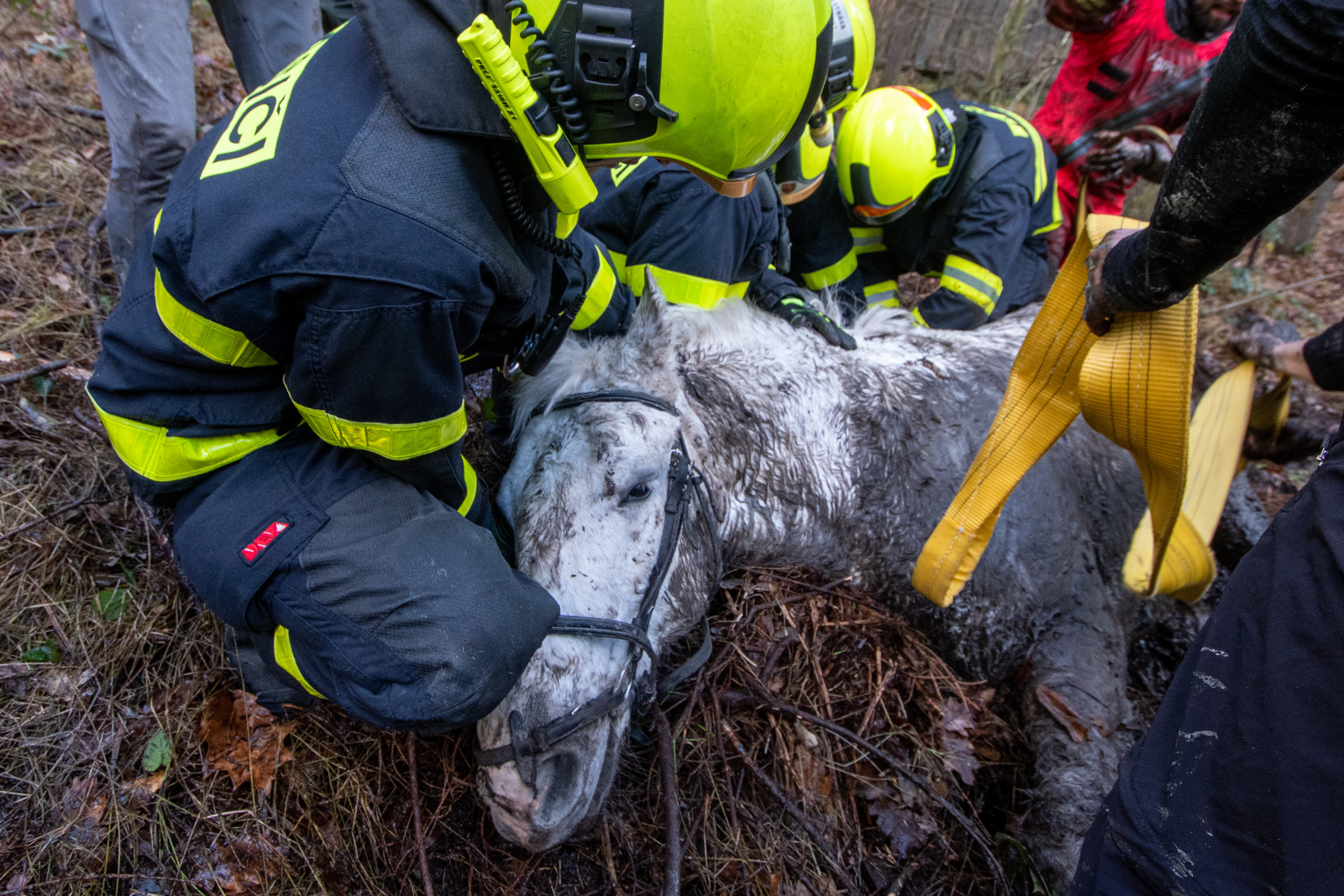 Vzhledem k podmáčenému terénu nebylo možné do akce zapojit těžkou techniku, hasiči proto, za pomoci speciálních popruhů, zvíře zajistili a pomoci vlastních sil, pod dohledem majitelky, vysíleného koně z bažiny vyprostili.