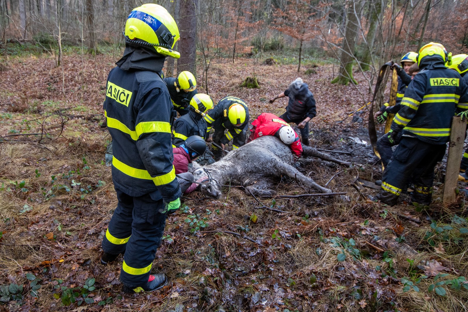 Informaci o potřebě záchrany koně, jenž se vlivem prasknutí latě dřevěného chodníku lekl a spadl do přilehlé bažiny, oznámila jeho majitelka na operační středisko hasičů ve 12:40 hod. K místu události okamžitě vyrazila nejen profesionální jednotka hasičů ze stanice ve Frýdku-Místku, ale také dobrovolná jednotka z Frýdku-Místku-Frýdku. Vzhledem k tomu, že se jednalo o záchranu zvířete, poplach byl vyhlášen i profesionálním hasičům ze stanice v Ostravě-Přívoze, kteří se specializují na záchranu zvířat z různých krizových situací.