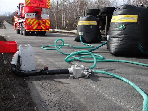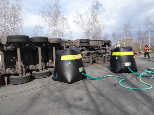 Jednotky Hasičského záchranného sboru Moravskoslezského kraje (HZS MSK) mají ve své výbavě již mnoho let nafukovací zvedací vaky, které dokáží zvednout mnohatunová vozidla, včetně tramvají. Zachytávací vaky zakoupil HZS MSK teprve nedávno.