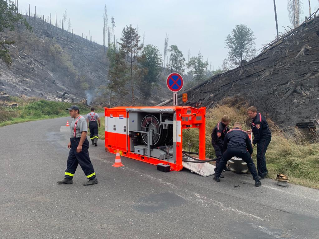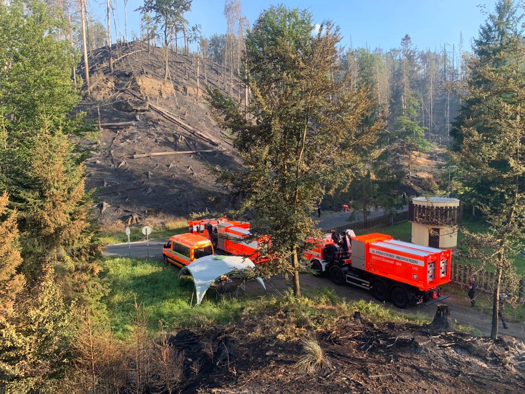 Druhým dnem (ve čtvrtek 28.7.2022) pracuje nepřetržitě u požáru v národním parku České Švýcarsko v lokalitě u Hřenska sedmičlenný čerpací odřad z Hasičského záchranného sboru Moravskoslezského kraje (HZS MSK) - s velkoobjemovým čerpadlem Somati, dovezeným z Ostravy.