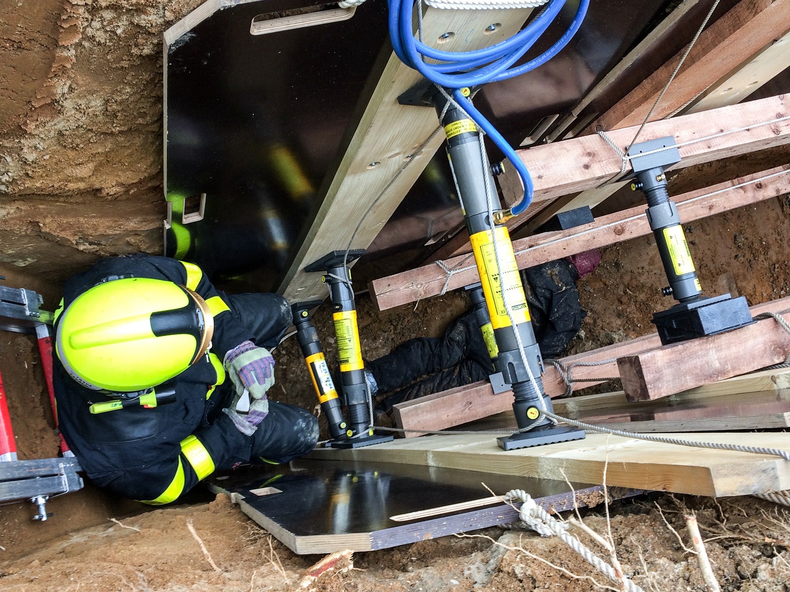 Pro zajištění výkopů slouží sady pneumatických vzpěrných tyčí s proměnnou délkou, opěrné desky, široký sortiment dřevěných hranolů a desek i textilní popruhy, klíny, zvedací pneumatické vaky a mnoho dalších prvků.