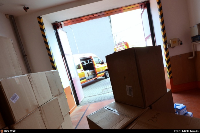 Jde o distribuci ochranných roušek, respirátorů, ochranných obleků, brýlí a dalších prostředků osobní ochrany. S příslušníky HZS MSK v tomto Krajském distribučním centru spolupracují dobrovolní hasiči z Ostravy-Radvanic. Centrum vede velitel jejich jednotky, který je zároveň příslušníkem HZS MSK. Počet balíků, které zde prošly rukama hasičů, odhaduje na konci března už na několik tisíc.