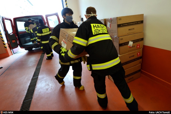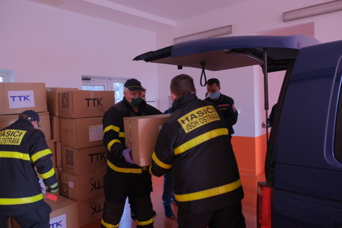 A příslušníci hlučínského Záchranného útvaru se v uplynulých dnech vyznamenali při nekončící vykládce a následné distribuci ochranných prostředků přímo z letiště v Pardubicích do skladu v Opočínku a pak do několika nejbližších krajských měst, tedy i do Ostravy. Denně jim prošly rukama tisíce krabic zdravotnického materiálu. Systém distribuce, který zajišťují hasiči, se tedy opět ukazuje jako nejefektivnější…