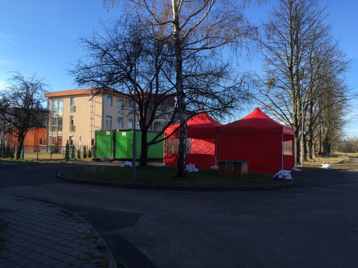 O víkendu již hasiči postavili taková odběrová místa v areálu Fakultní nemocnice Ostrava, ve Slezské nemocnici Opava a v Nemocnici s poliklinikou v Havířově. V pondělí 16.3.2020 odpoledne v Městské nemocnici Ostrava, video (Tomáš Lach, HZS MSK): https://youtu.be/2RByUsKvrqw Připraveno k užívání je od pondělka i páté odběrové místo v Nemocnici Třinec Sosna.