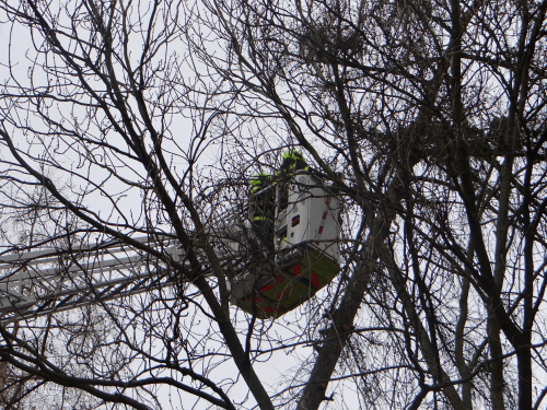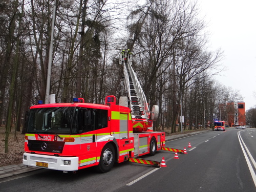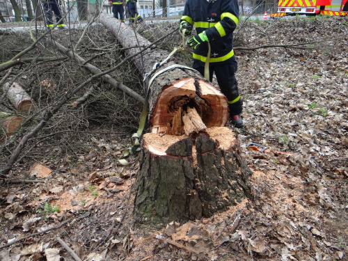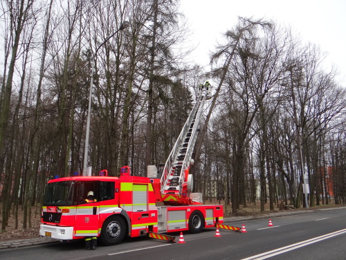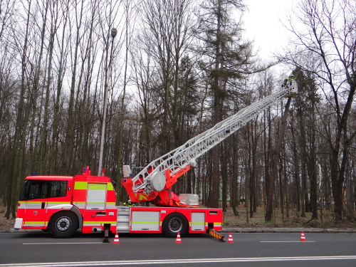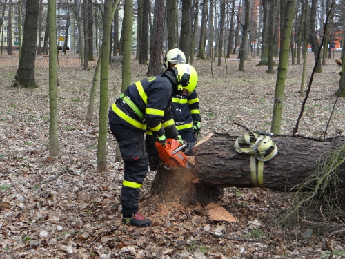Tak se stalo i ve čtvrtek 15.3.2019 dopoledne, kdy si pejskař všiml nebezpečně nakloněného (velmi vzrostlého) modřínu na okraji Bělského lesa v Ostravě-Zábřehu. Směr případného pádu byl namířen přímo na frekventovanou čtyřproudou Plzeňskou ulici a souběžný chodník.Ihned po upozornění zodpovědného muže tam vyjela jednotka Hasičského záchranného sboru Moravskoslezského kraje (HZS MSK) ze stanice Ostrava-Zábřeh, včetně automobilového žebříku AZ 30 Camiva. Připraveny byly ostré motorové pily a smetáky s lopatami pro předpokládaný úklid zbytků dřeviny ze silnice.