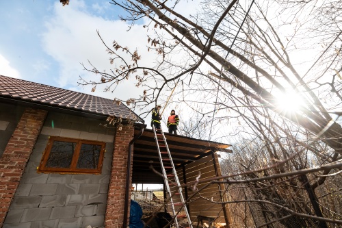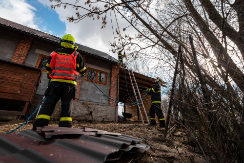 V uplynulých dnech hasiči mj. zasahovali u dvou nebezpečných stromů, visících na elektrickém vedení v Českém Těšíně-Stanislavicích. Zasahovali zde velmi oparně, aby nepoškodili nově vybudovanou střechu rodinného domku. Zasahovala zde jednotka HZS MSK ze stanice Český Těšín. Foto Petr Andáško, HZS MSK.