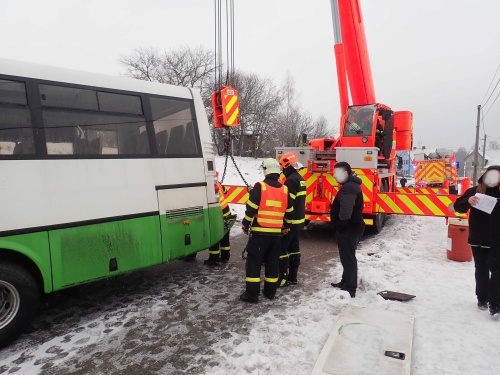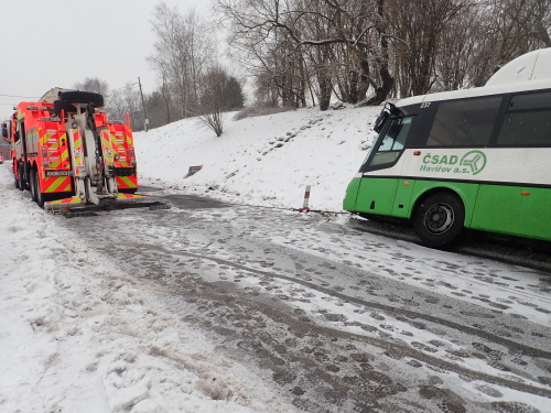 Na dvou místech Moravskoslezského kraje musela během čtvrtečního dopoledne 10.1.2019 zasahoval speciální technika profesionálních hasičů (HZS MSK), a to při vyprošťování meziměstského autobusu v Albrechticích u Českého Těšína (okres Karviná) z příkopu a nákladního automobilu Mercedes Atego z řeky Krasovka v Krasově (okres Bruntál).
