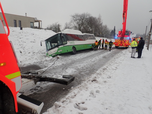 V albrechtické Nádražní ulici skončil autobus ČSAD Havířov oběma pravými koly v zasněženém příkopu. Řidička a všichni tři cestující vyvázli bez zranění a dokázali sami vystoupit. Zasahovaly zde dvě jednotky Hasičského záchranného sboru Moravskoslezského kraje (HZS MSK) - ze stanic Havířov a Ostrava-Zábřeh, odkud přijel vyprošťovací speciál Bizon, jeřáb AC 60 Demag/Terex a kontejnerová pojízdná dílna. Hasiči autobus vyprostili bez jeho poškození.