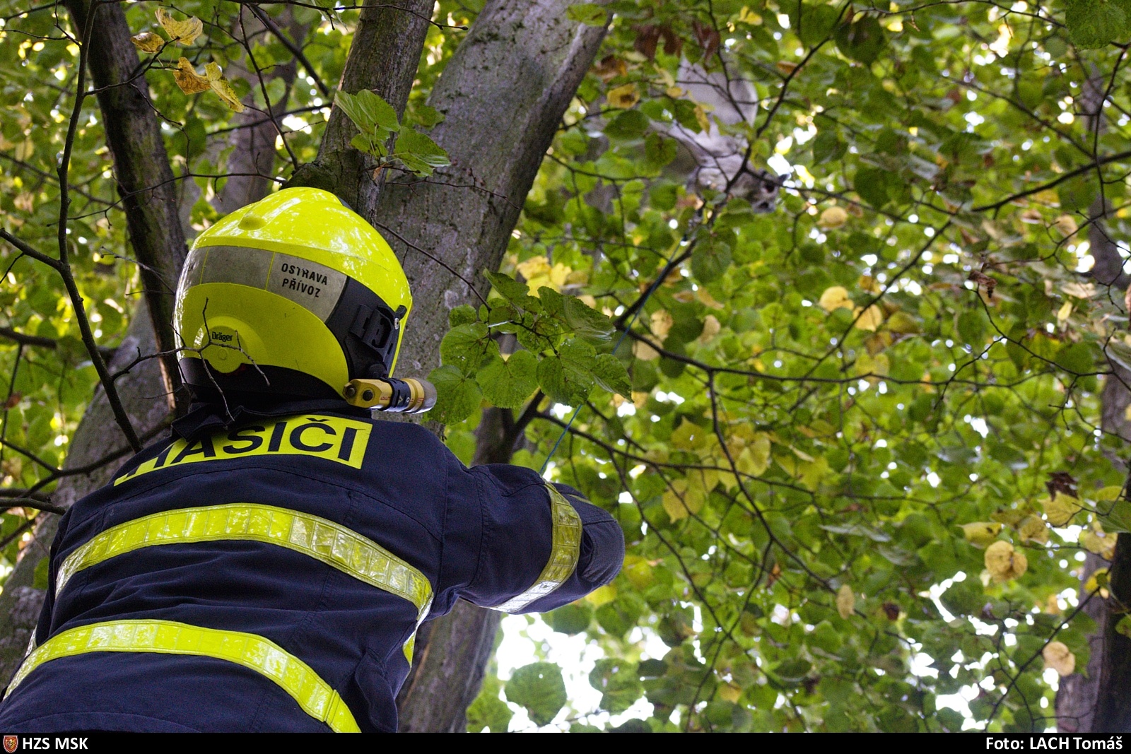 V sobotu 24.9.2022 odpoledne byli ostravští hasiči povoláni k záchraně malé exotické sovy. Ta uletěla majitelce na vysoký strom v Bělském lese. Tady ji hasiči za pomoci žebříku a odvážného hasiče snesli do bezpečí.