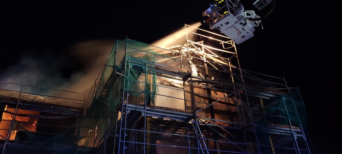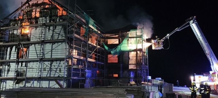 Vzhledem k tomu, že jde především o dřevěné a sendvičové konstrukce, může zde silně ohněm poškozený objekt pomalu dohořívat pod kontrolou střídajících se jednotek hasičů několik hodin i dní. Jde naštěstí jen o slabé hoření uvnitř sendvičových stěn.