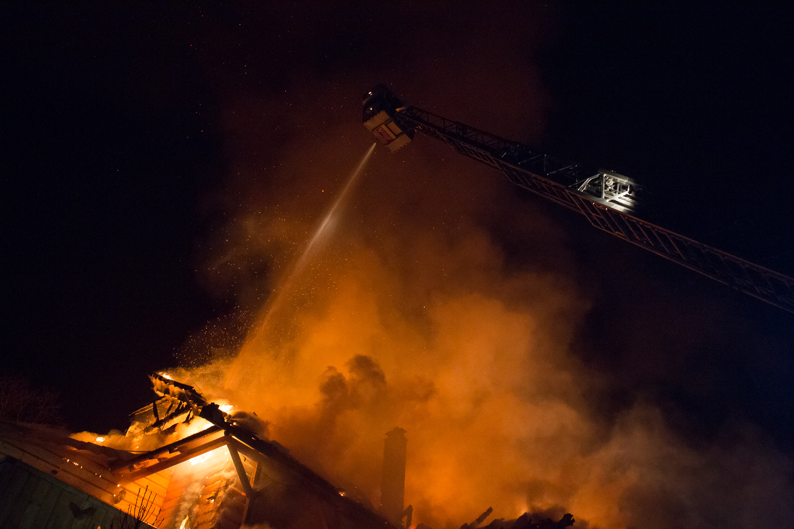 Při příjezdu prvních jednotek na místo zásahu byla střecha dvoupodlažního objektu o půdorysu přibližně 20x40 metrů zasažena plameny, hořelo rovněž v podkroví.