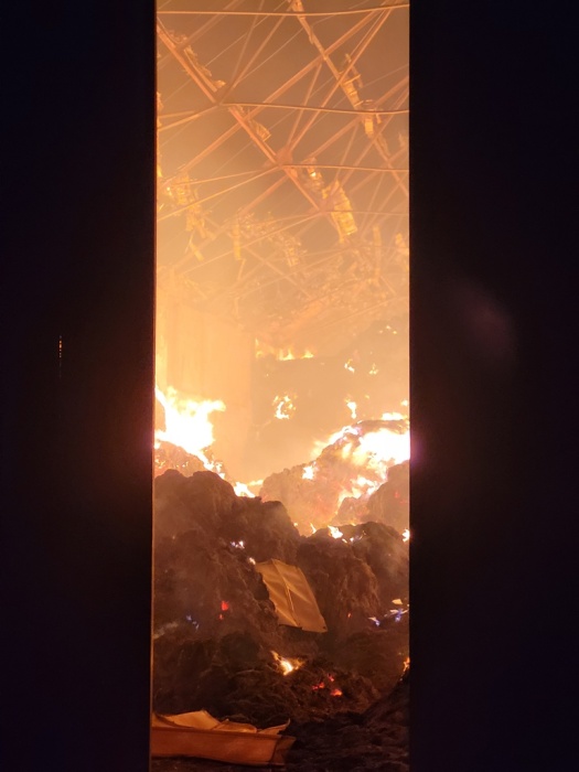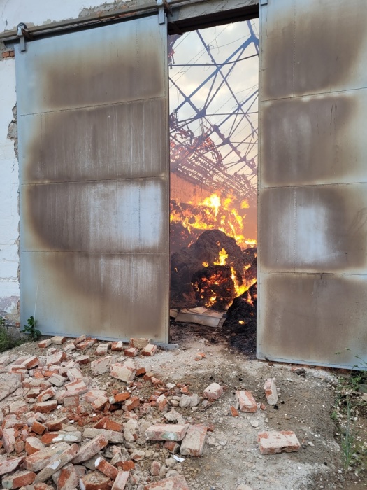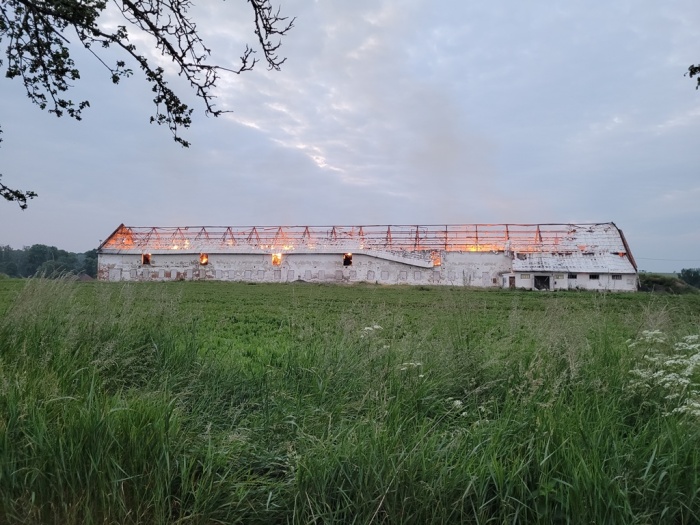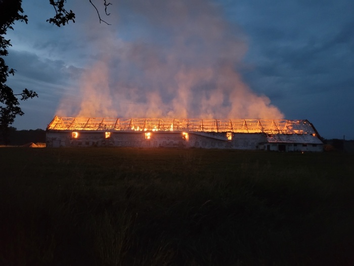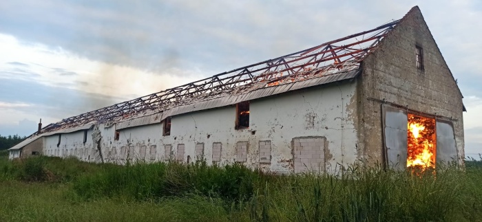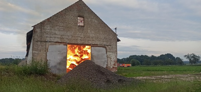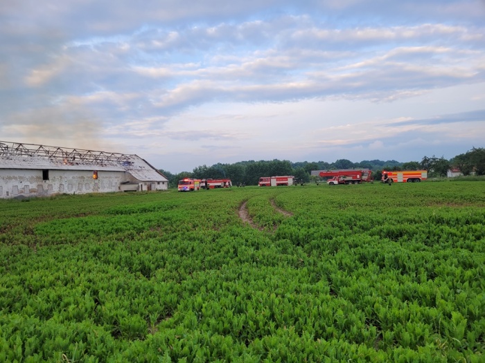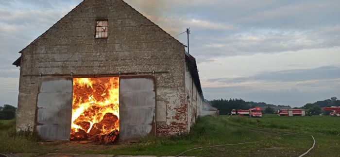 Uvnitř kravína (škoda 2 miliony korun) stále hoří uskladněné seno a sláma (škoda 800 tisíc korun), připravené pro výrobu pelet. Dohořívat by mohlo podle předběžného odhadu hasičů až dva dny. Přeskočení ohně na jinou budovu nehrozí, kravín stojí osamoceně na poli.