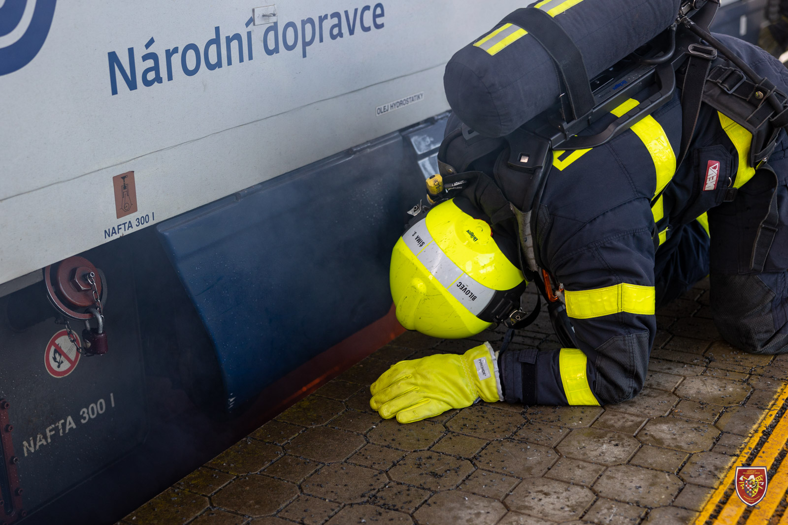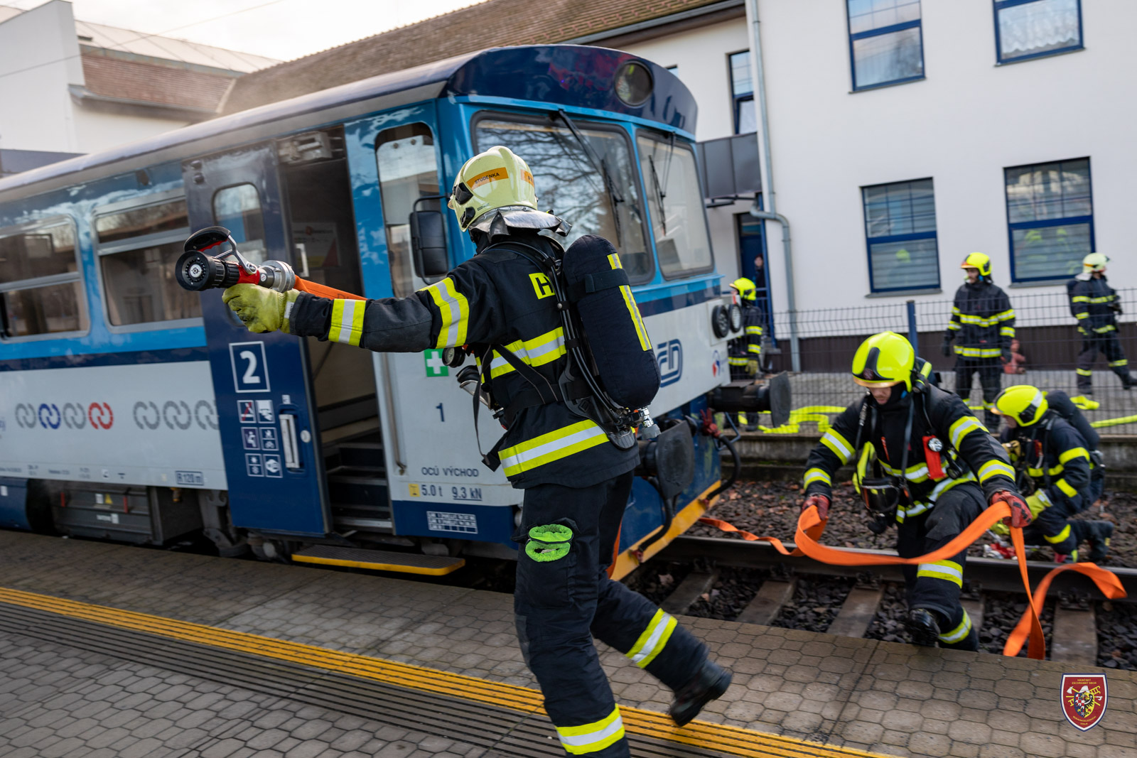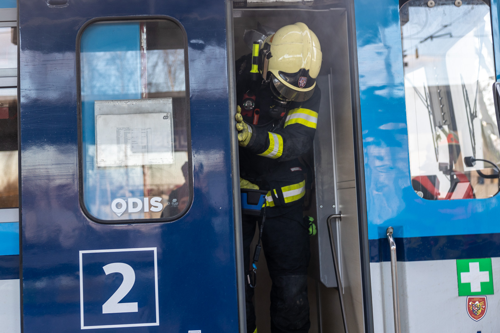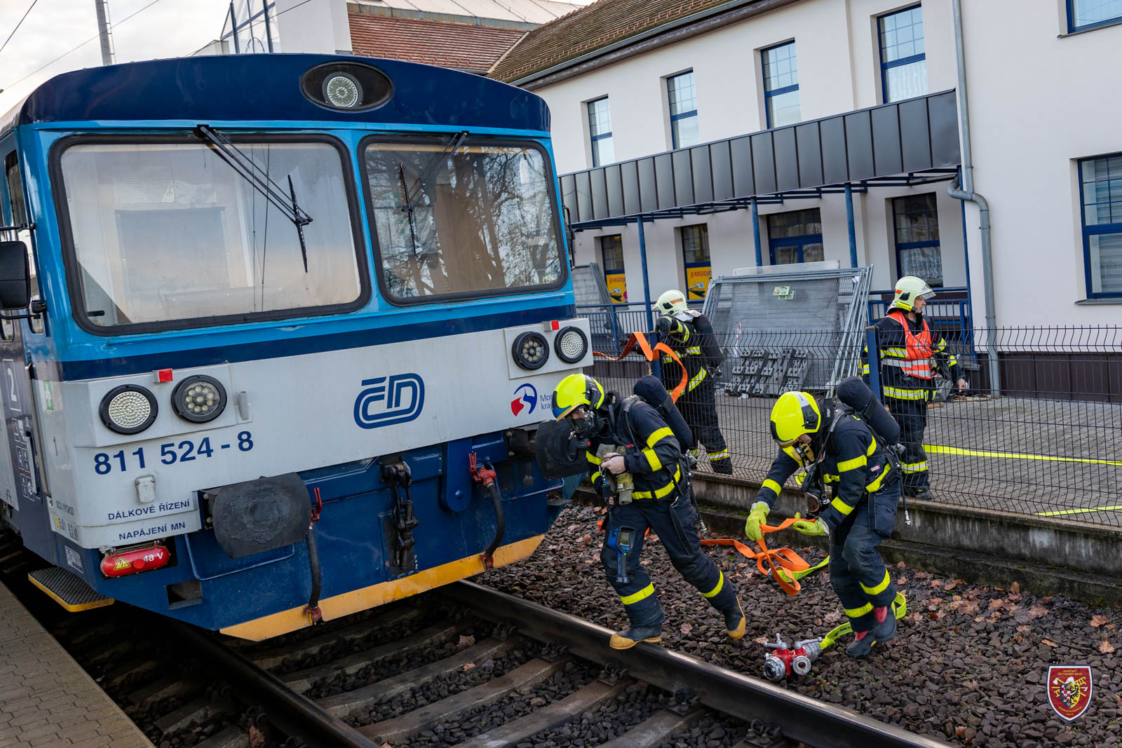 Čtyři hasičské jednotky zasahovaly v sobotu 14. ledna 2023 ráno na nádraží ve Studénce u požáru v motorovém prostoru osobního vlaku.