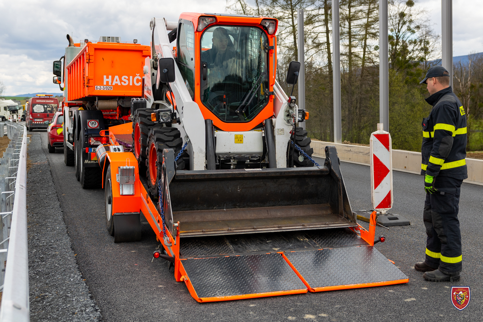 Než se přivolané soukromé firmy mohly postarat o odtah, povolal si velitel zásahu k události za účelem přeložení nákladu na náhradní kamion kolový nakladač Bobcat ze stanice Hasičského záchranného sboru Moravskoslezského kraje v Ostravě-Zábřehu a dobrovolnou jednotku z Hnojníku.