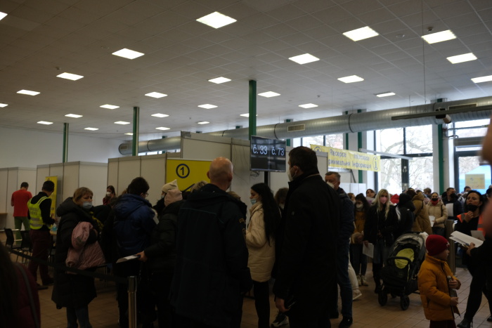 Už od úterních ranních hodin zde proudily desítky až stovky žadatelů, mnohdy s malými dětmi. Lidé trpělivě čekali někdy i mnoho minut ve frontě na získání pořadového čísla a pak i desítky minut i několik hodin na zavolání k boxu k policejní registraci. Ale to už v klidu a teple.