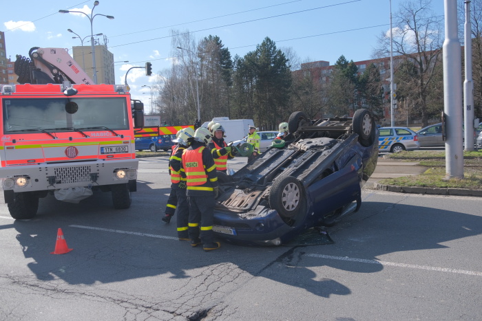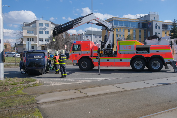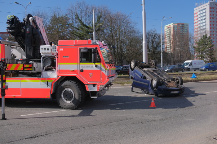 Dvě jednotky profesionálních hasičů (HZS MSK) zasahovaly ve čtvrtek 5.3.2020 přes poledne u nehody dvou osobních automobilů Škoda Octavia a Dacia Logan, které se střetly na rušné světelné křižovatce u radnice v ostravské části Jih. Přestože Dacia skončila na střeše, oba řidiči vyvázli bez zranění. Dacii přijel postavit na kola vyprošťovací speciál Tatra Omars ze stanice HZS MSK Ostrava-Zábřeh.