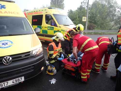 Hasiči museli z oktávie opatrně vyprostit zraněnou a zaklíněnou řidičku a asistovali zdravotníkům při jejím ošetřování.