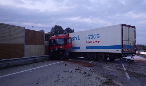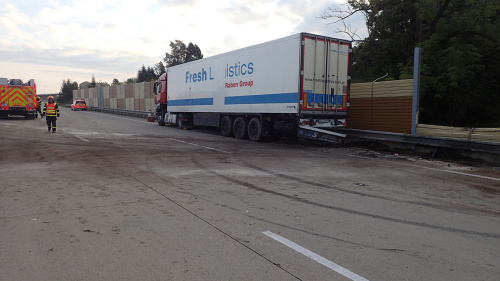 Čtyři jednotky profesionálních hasičů (HZS MSK) zasahovaly v sobotu 30.9.2017 ráno (pět hodin) na dálnici D48 u Českého Těšína (okres Karviná) u nehody polského kamionu Mercedes Actros, který prorazil středová svodidla a skončil v protihlukové stěně napříč jedním směrem dálnice. Starší ukrajinský řidič vyvázl bez zranění.