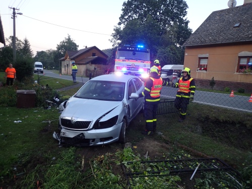 Řidič, který cestoval sám, měl zraněnou ruku. Hasiči octavii vytáhli navijákem cisterny ze zahrady k silnici a pak ještě navijákem narovnali sloupek plotu.