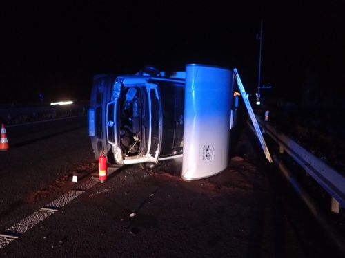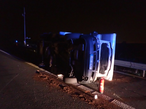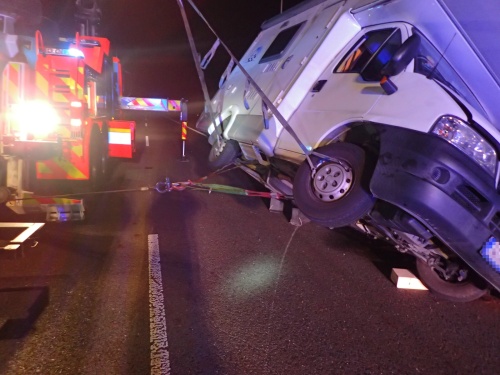 Nejprve hodinu po páteční půlnoci na dálnici D1 u Bravantic, kde na levém boku skončil karavan,