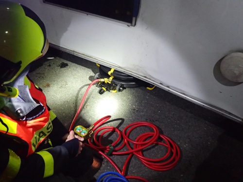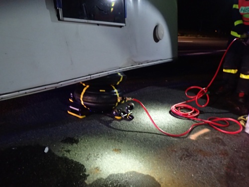 K přizvednutí karavanu použili bílovičtí profesionální hasiči (podruhé v krátké době) speciální zvedací nafukovací vak „sněhulák”, tzn. dva pevně propojené vaky nad sebou (viz foto z D1 č. 5 a 6), který vozí poměrně krátce na svém prvním výjezdovém vozidle. Dálnice D1 ve směru na Ostravu byla po dobu hasičského zásahu neprůjezdná
