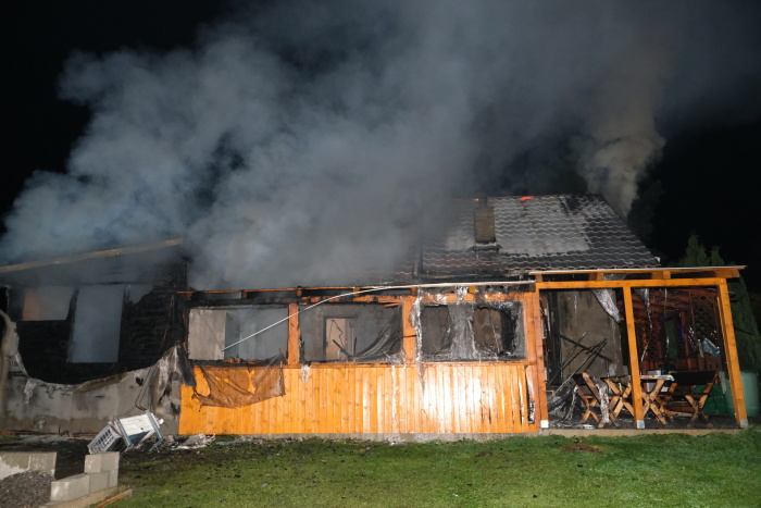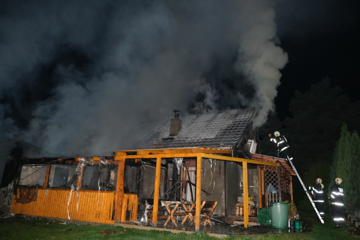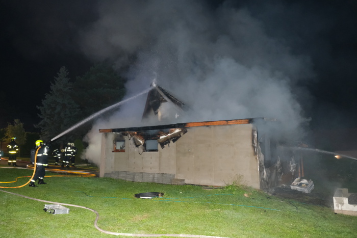 Noční požár chaty v Dolních Domaslavicích