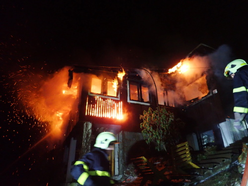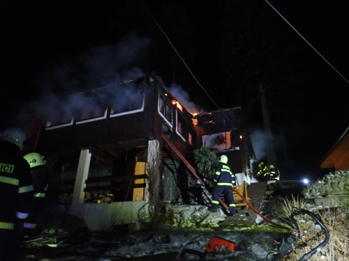 Noční požár chaty ve Frýdlantu nad Ostravicí