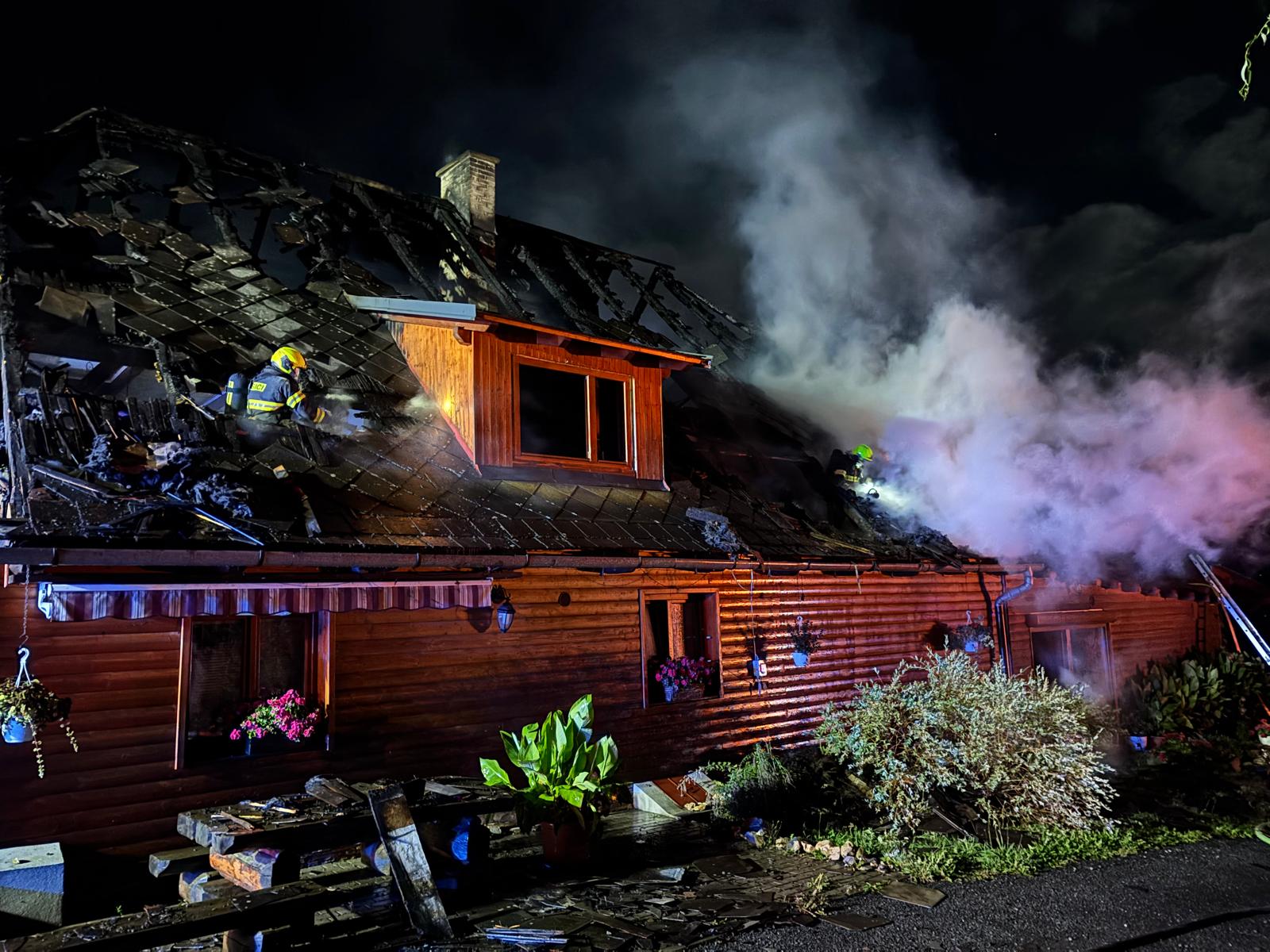 Operační středisko hasičů přijalo hlášení o požáru v sobotu 6. září 2025 krátce před osmou večer. K místu okamžitě vyrazilo devět jednotek profesionálních i dobrovolných hasičů. Když dorazily první cisterny, plameny už pohlcovaly pergolu a střechu domu. „Nasadili jsme šest vodních proudů a vodu na místo dopravovali kyvadlově,“ uvedl velitel zásahu.