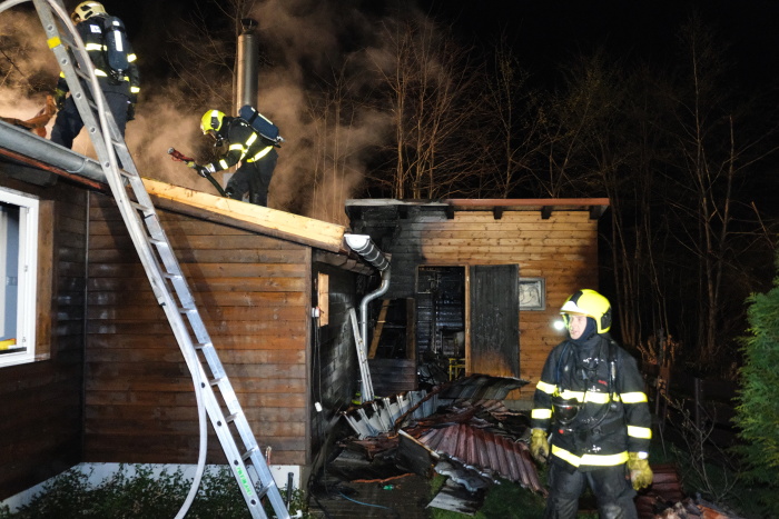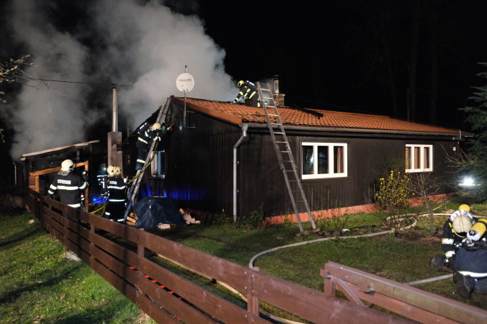 Noční požár dřevěné chaty v Ostravici