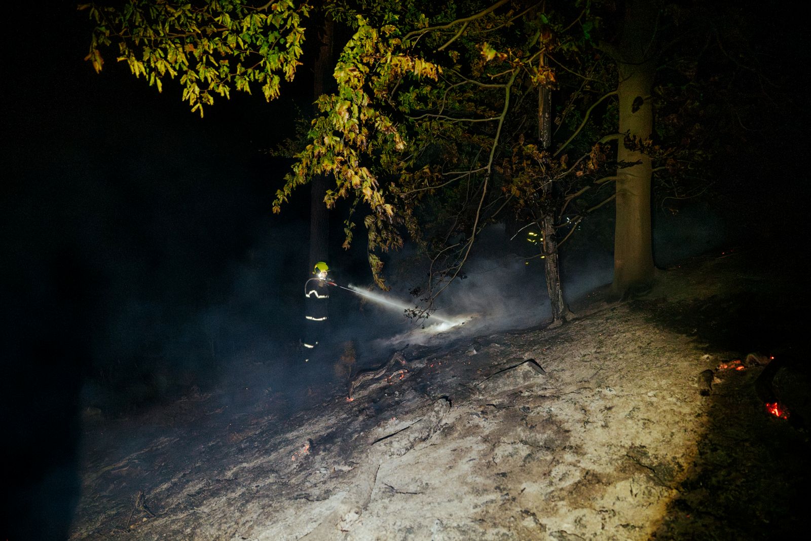 Noční požár lesního porostu zaměstnal sedm jednotek hasičů