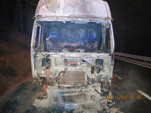 Hasiči dostali oheň pod kontrolu během tří minut, uhasili jej za dalších jedenáct minut. Pak mimo jiné prověřovali, zda neuniká nafta z palivové nádrže. Dvě jednotky odjížděly z místa zásahu až v úterý po třetí hodině ranní. Běloruský řidič kamionu vyvázl bez zranění.