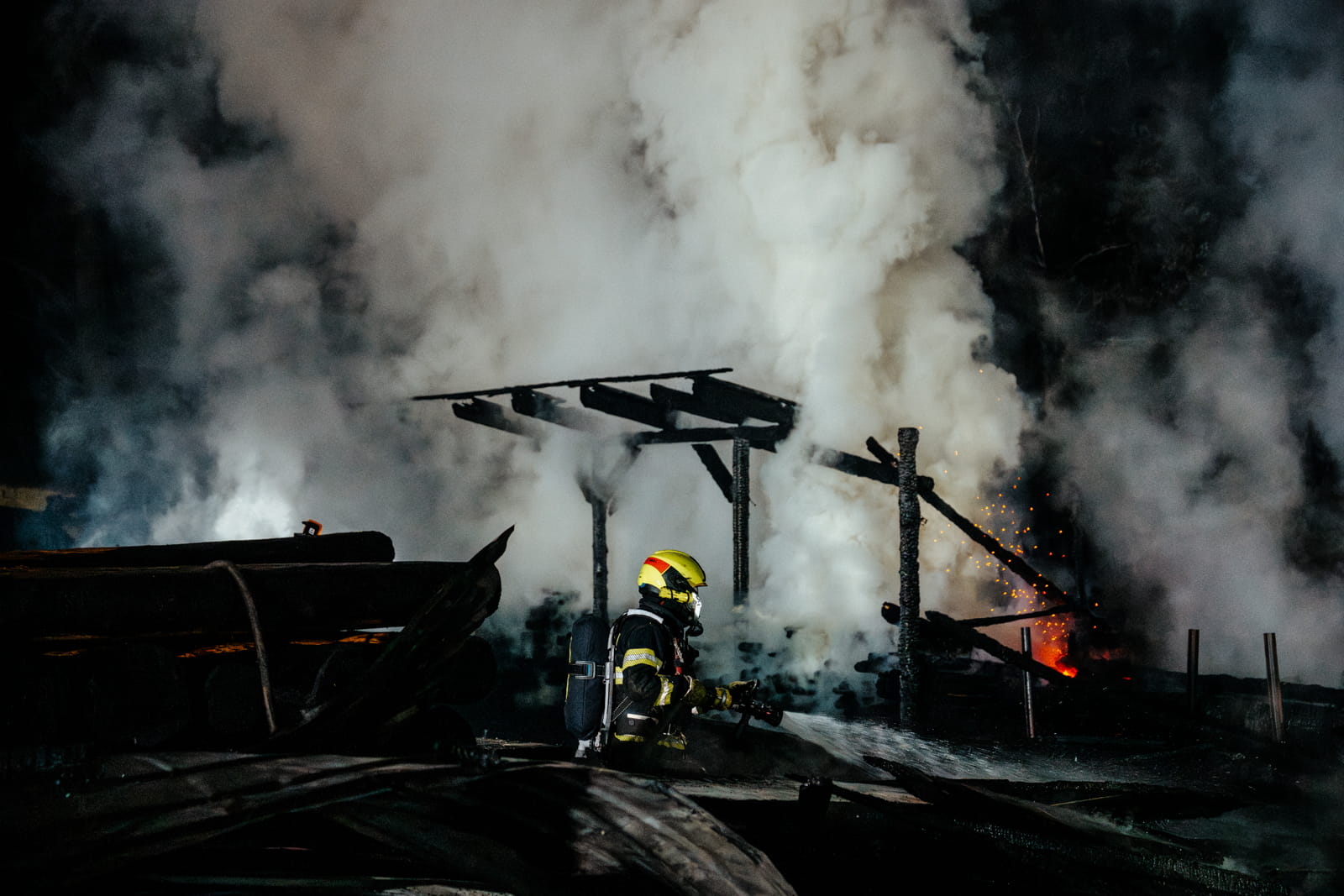 Noční požár zasáhl část areálu a během krátké doby způsobil rozsáhlé škody na majetku. Hasiči museli nasadit větší počet sil a prostředků, aby zabránili dalšímu šíření plamenů. Příčina vzniku požáru zůstává předmětem šetření.
