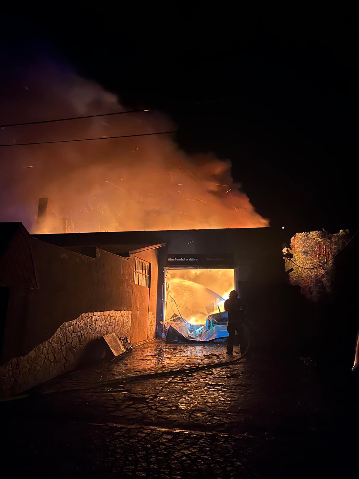 Noční oheň zachvátil celý autoservis