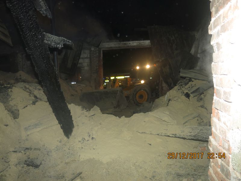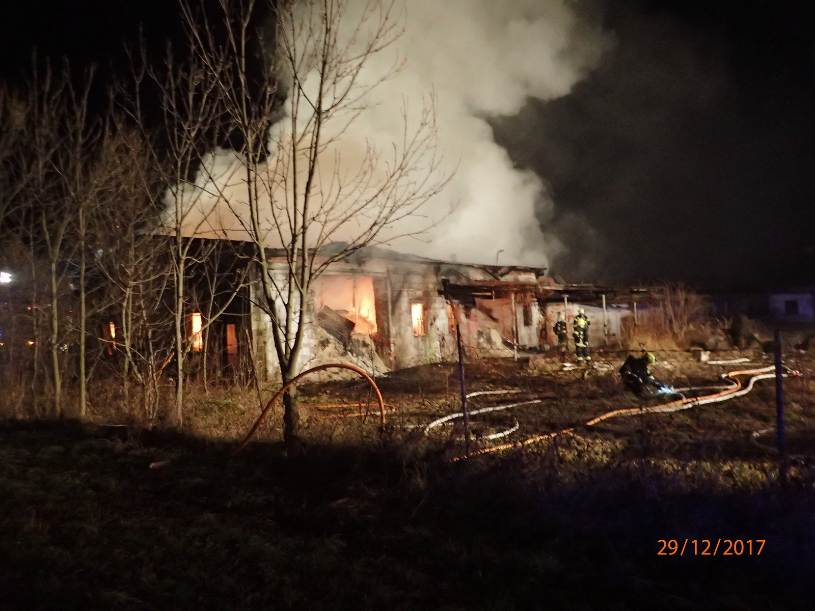 V pátek 29. prosince 2017 večer zasahovalo osm hasičských jednotek ve Skrochovicích, místní části obce Brumovice na Opavsku, u požáru bývalého kravína s uskladněným sypkým polyuretanem.