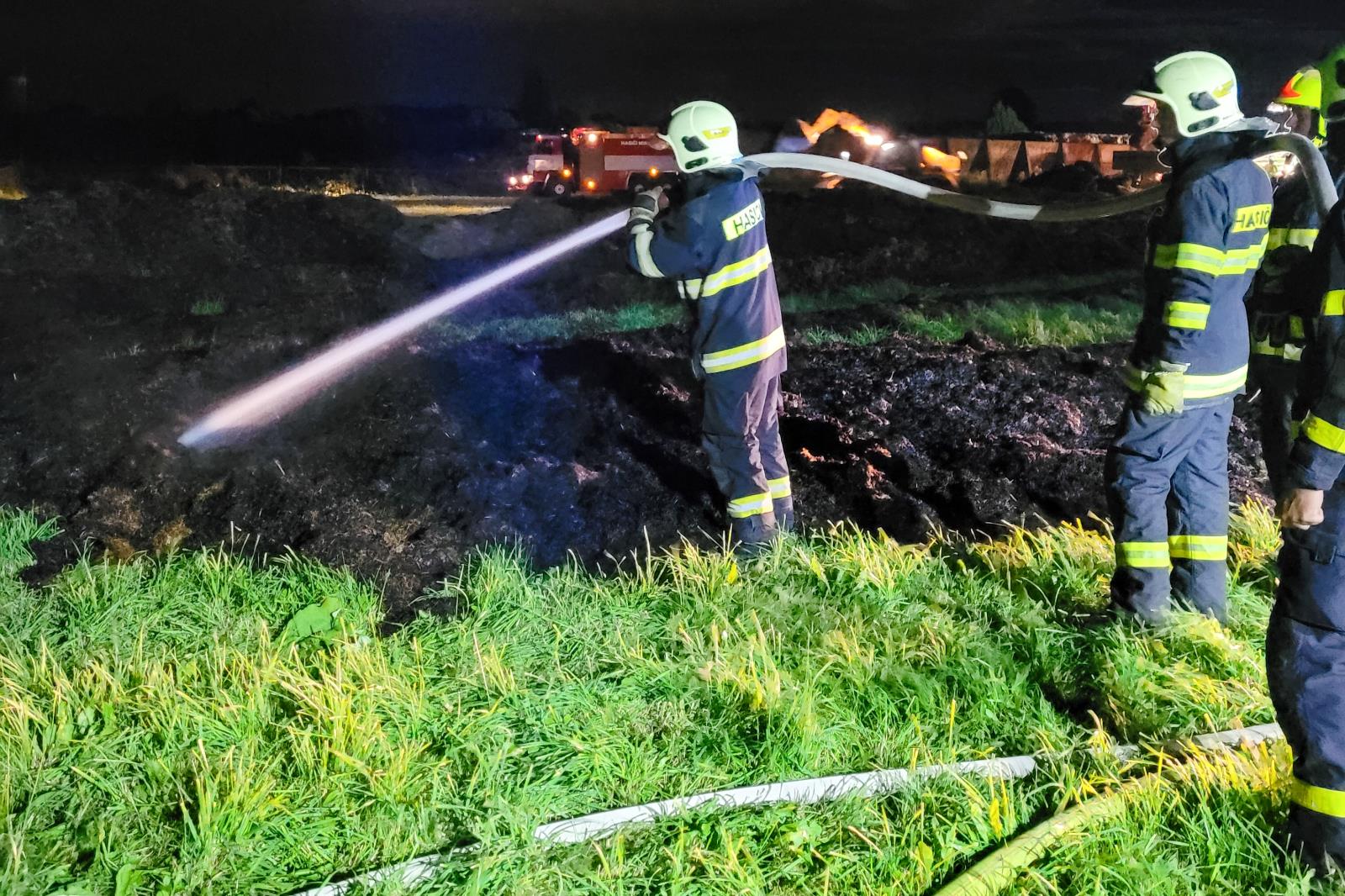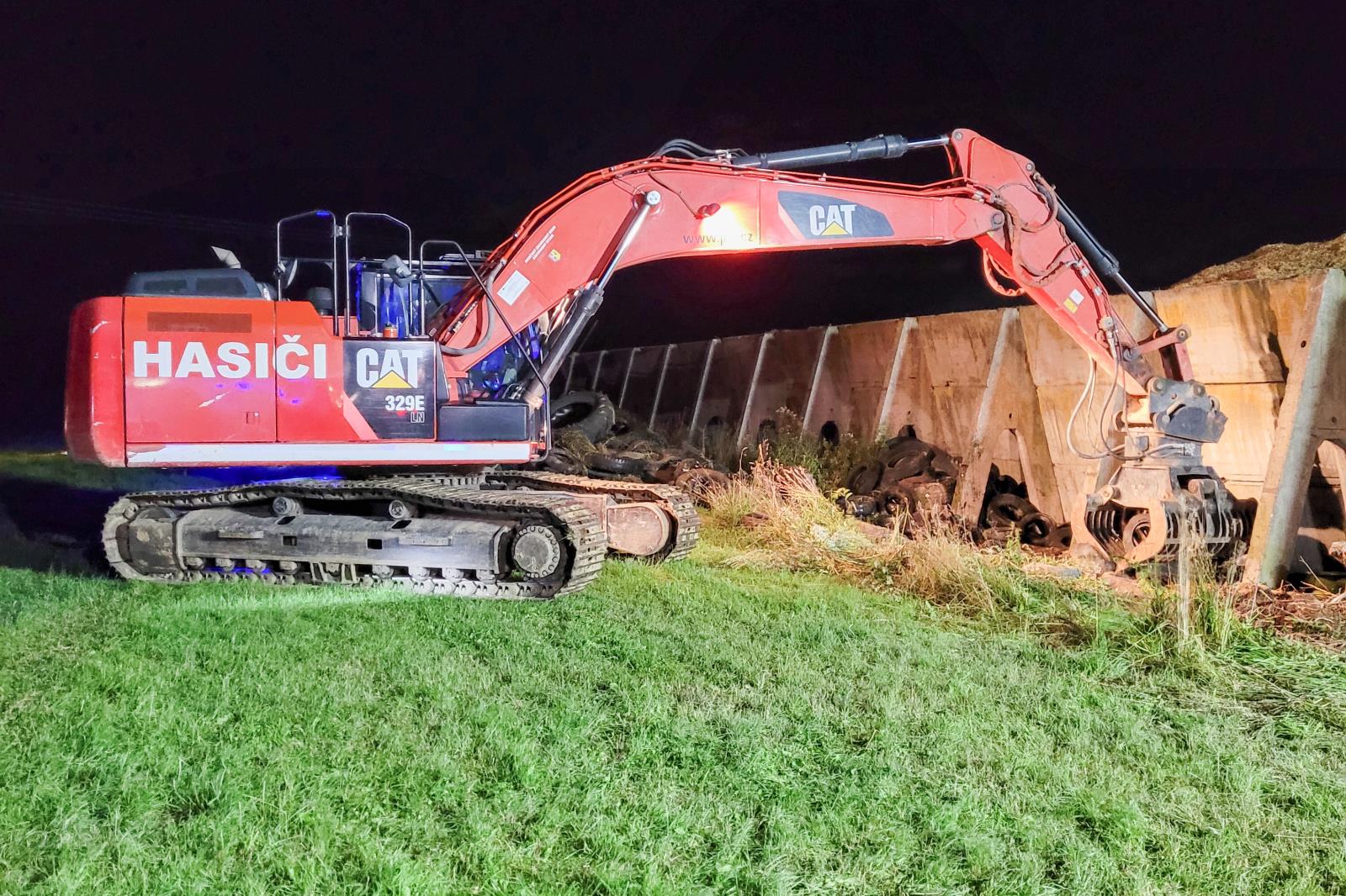 S jeho pomocí pak hasiči začali hořící krmivo vyskladňovat a prolévat vodou na volném prostranství. Hotovo měli krátce po jedné hodině ráno, do sedmi hodin pak na místě zůstala na dohled dobrovolná jednotka z Mikolajic. Práci hasičů komplikoval silný vítr a vysoká prašnost.