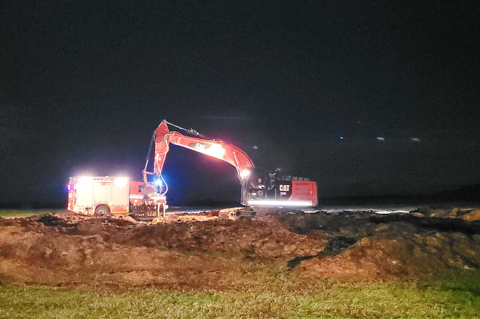 Majitel objektu již s vlastním nakladačem zahájil rozhrabávání píce tak, aby se bylo možné dostat k ohnisku. Vzhledem k poloze požáru a velikosti nakladače by však takový postup zabral příliš mnoho času, velitel zásahu tak povolal na místo pásové rypadlo ze Záchranného útvaru HZS ČR v Hlučíně.