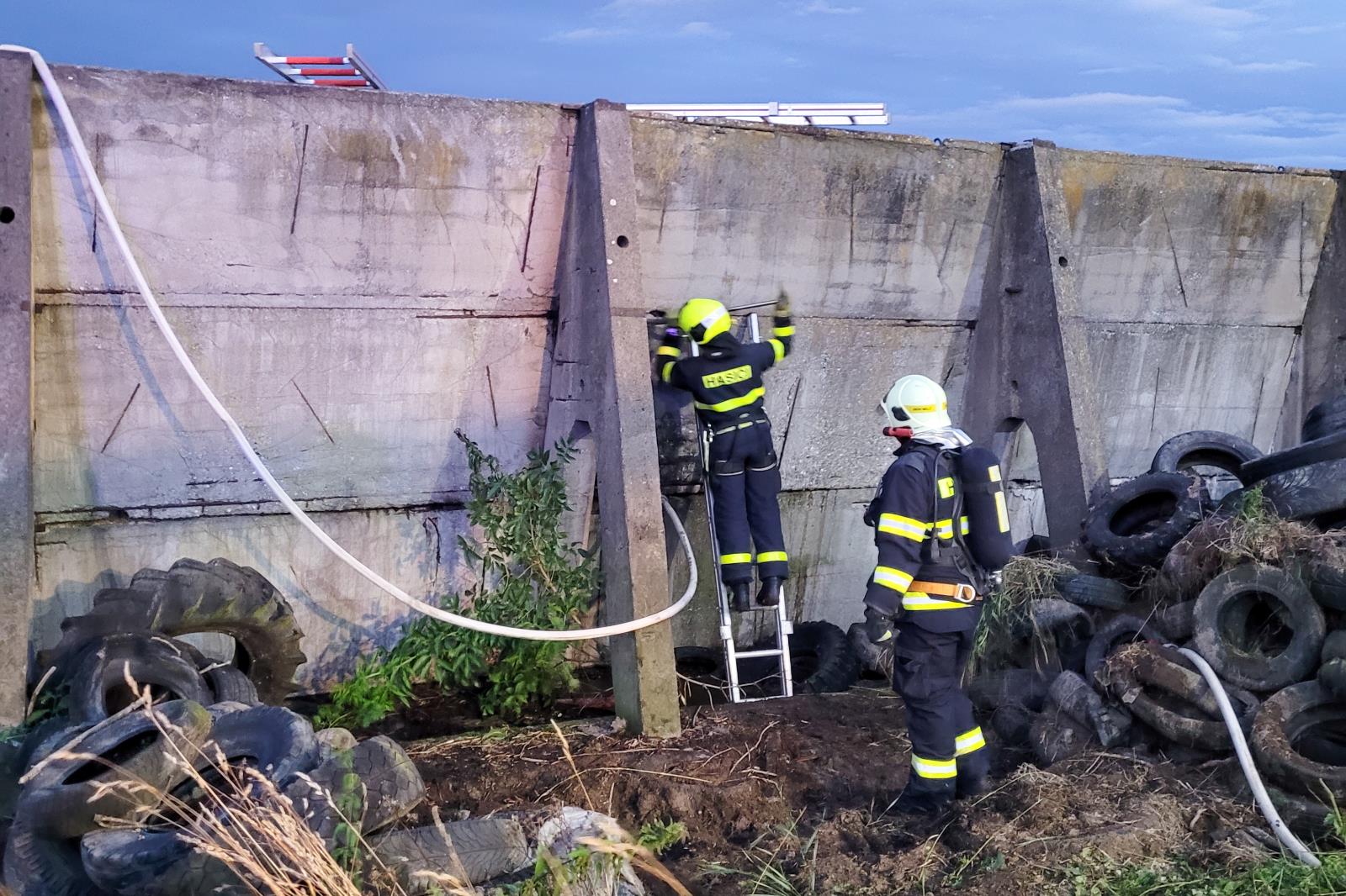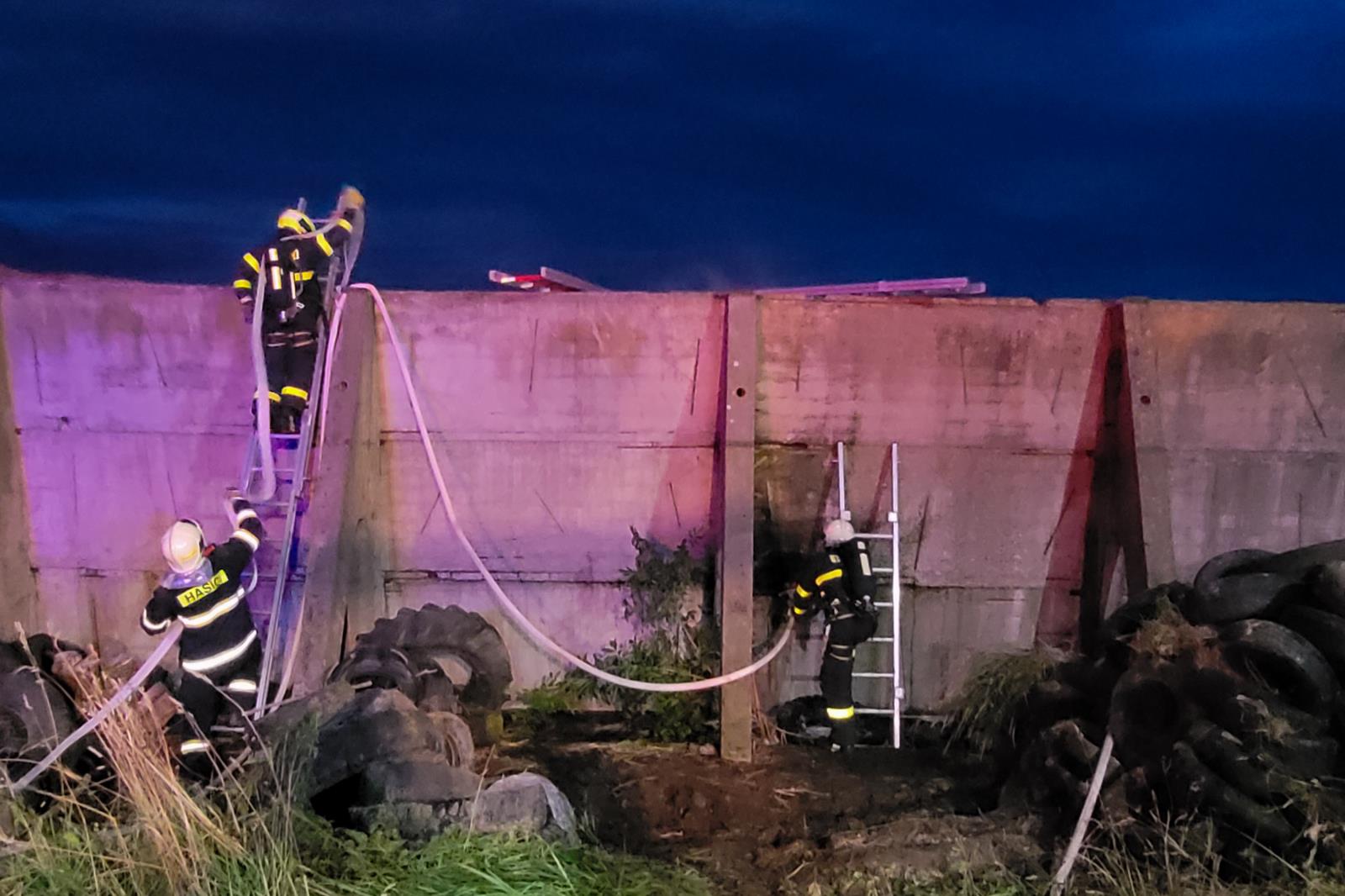 Požár byl na tísňovou linku ohlášen pět minut po půl osmé večer s tím, že se z krmiva uskladněného v betonovém nadzemním žlebu o půdorysu přibližně 25 × 50 metrů kouří.