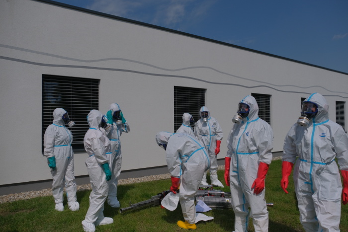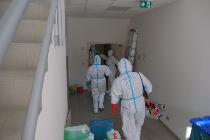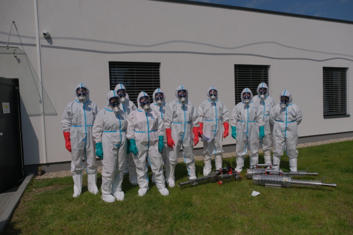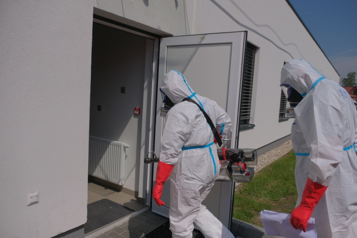 Už za tři hodiny měli ostravští profesionální hasiči (HZS MSK) během čtvrtku 4.6.2020 vydesinfikovány vnitřní prostory Alzheimer centra v Ostravě-Vítkovicích proti nákaze koronavirem Covid-19 pomocí speciálních generátorů. Další dvě hodiny jim zabralo budování zázemí, převlékání a dekontaminace samotných hasičů a jejich doprovodu po příchodu z objektu, včetně jejich ochranných oděvů a příslušenství. Část oděvů a obuvi je jednorázová a bude ekologicky zlikvidována, část lze opět použít.
