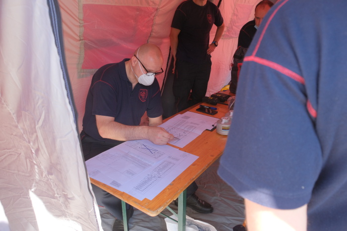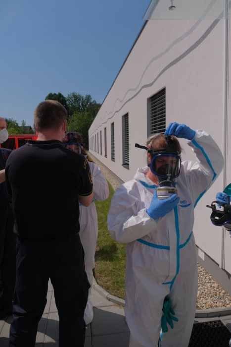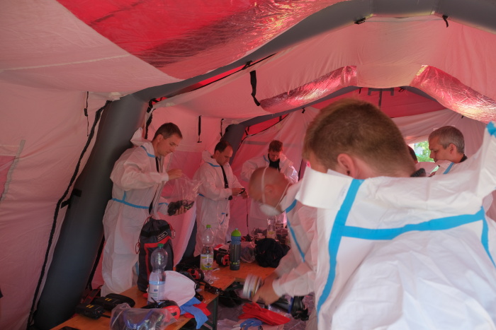 Dvojice hasičů v hermeticky uzavřených ochranných oblecích, rukavicích a speciálních maskách Dräger s filtry (a se sluchátky) se střídaly v používání až 18 kg těžkého generátoru (hmotnost po jeho naplnění). Zhruba po 40 minutách je potřeba generátor opět naplnit pečlivě testovaným a osvědčeným desinfekčním prostředkem (Virkon S) a benzínem. Uvnitř Alzheimer centra hasiče doprovázeli dvě obdobně oděné sestry a údržbář.